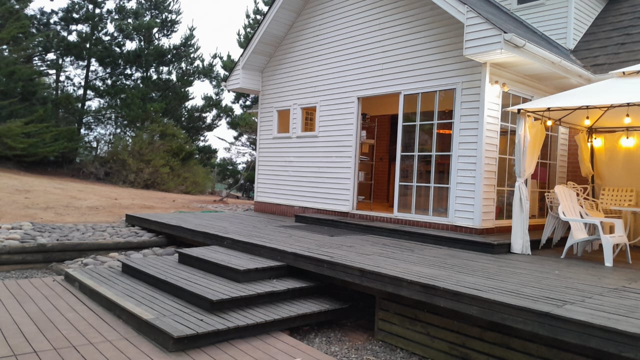 Linda parcela con casa en exclusivo condominio (con cierre automático) ubicada en sector residencial para arriendo por días, a 7 minutos del centro de Mirasol en Algarrobo. La casa cuenta con amplia terraza por todo su contorno y un gran sector de quincho al costado de las piscinas que son para adultos y niños, juego infantiles y cancha de arena. La vivienda de dos pisos, tiene en primer piso 5 dormitorios (4 matrimoniales y un dormitorio con dos camas de 1 plaza), y dos baños ( 1 en suite), gran living con chimenea, comedor y cocina. En el segundo piso, hay una cómoda sala de estar que es ideal como sala de juegos de niños y posee una maravillosa vista al mar con puestas de sol inolvidables. También posee grandes espacios para estacionamiento (con 1 estacionamiento techado), y tiene cierre automático en el portón de la parcela. Excelente propiedad para disfrutar en familia en contacto con la naturaleza y a 10 minutos de las playas de Algarrobo. Año nuevo ¡¡Disponible!! y también otras fechas de la temporada verano 2026 (consulte por sus fechas de vacaciones)… Ideal para disfrutar en familia. Para contacto y coordinar visita favor comunicarse a los teléfonos +569-83399549, oficina 35-2481925, La oficina comercial se ubica en Avenida Peñablanca 320, oficina 3, comuna de Algarrobo. ¡Los esperamos!